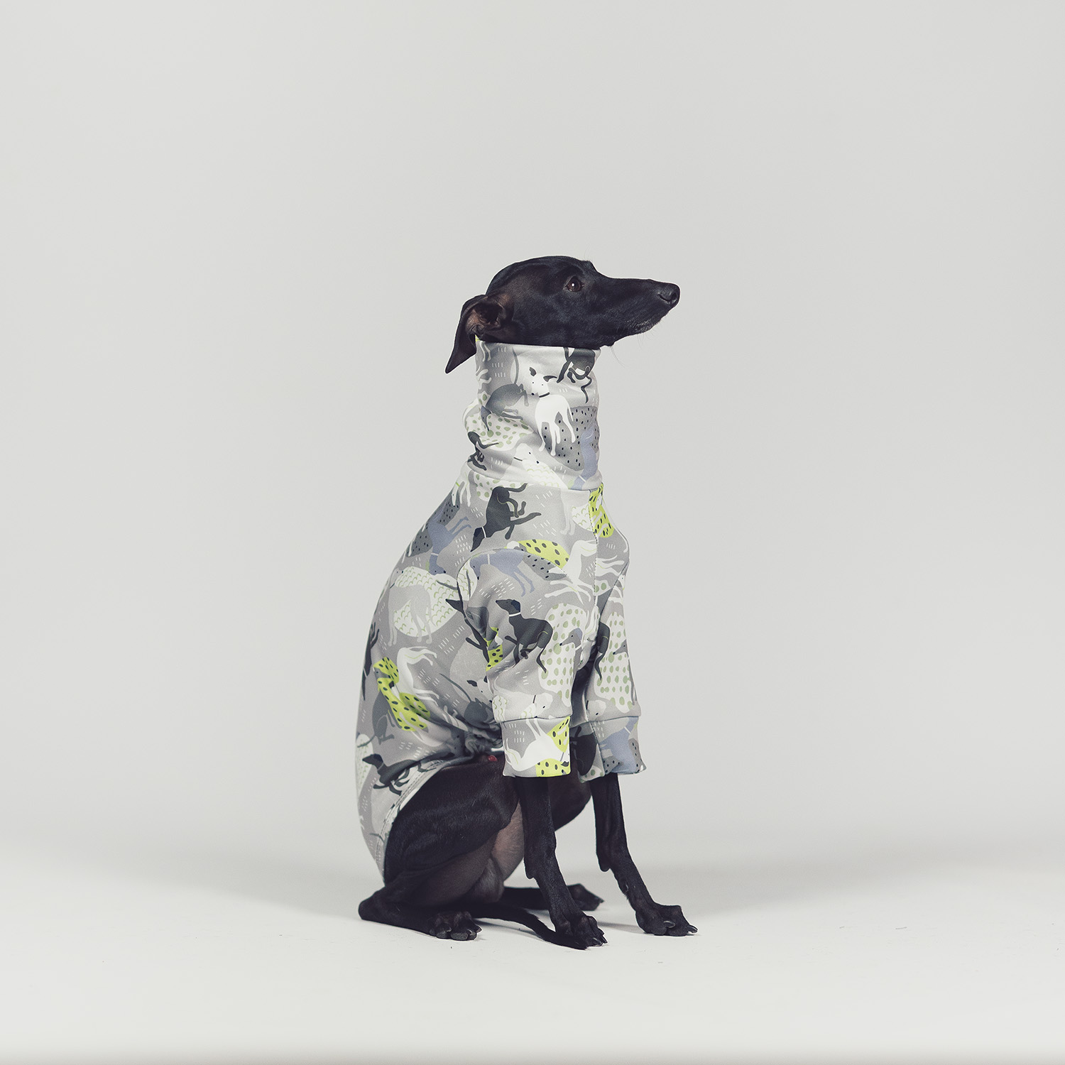 A new generation of italian greyhound blouses - made of functional and even warmer Stretchmax® fabric - highest quality, used in human sports clothing.