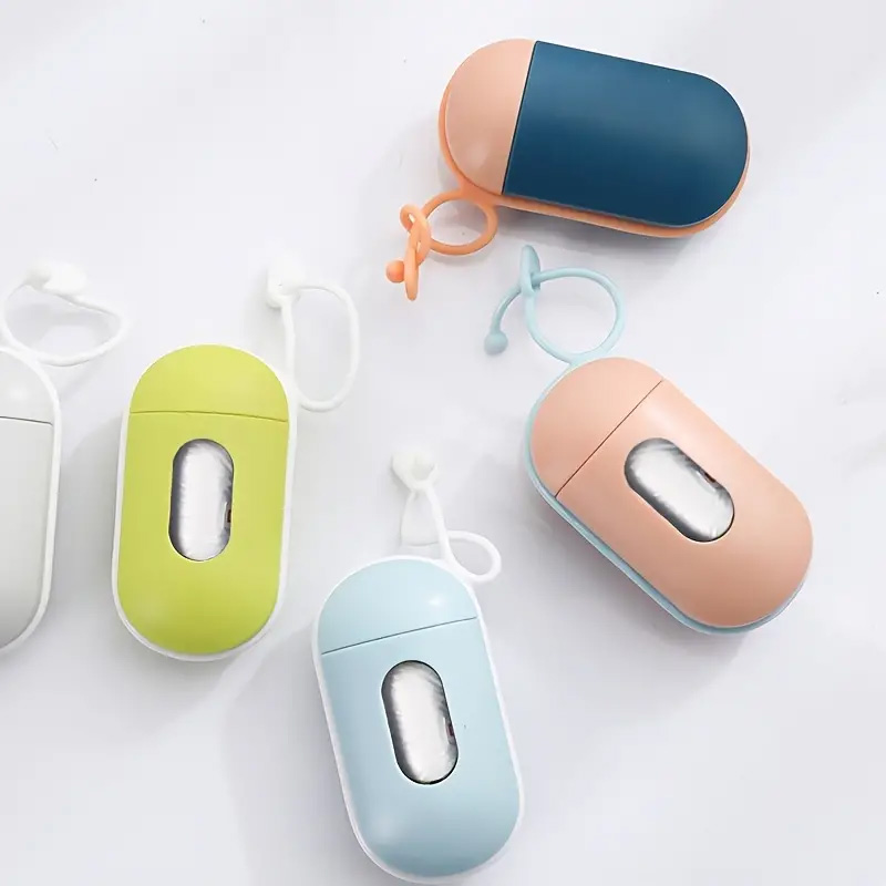 Poo bags dispenser, made of plastic. The container allows for easy removal of individual bags.